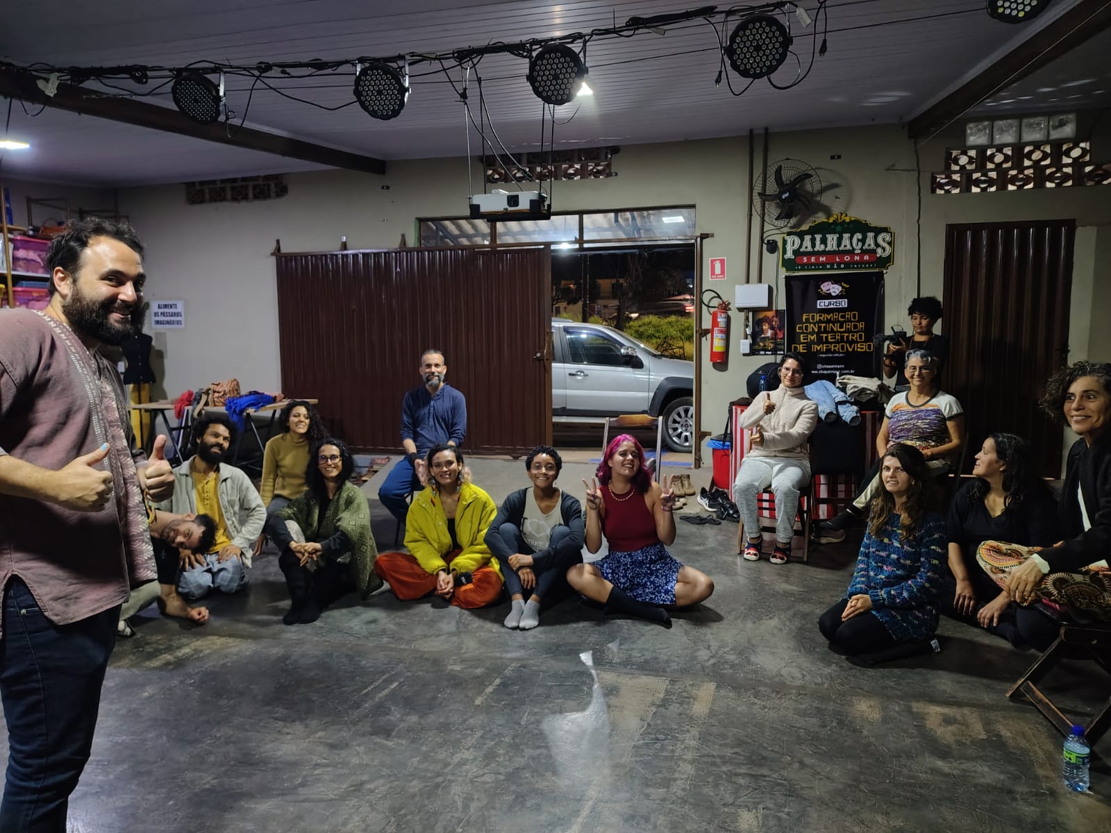 O curso, de 80 horas, incluiu 60 horas de aula com o professor Matheus Loures e um intensivo de 20 horas com os artistas Ian Soffredini e Alicia Ignácio, grandes expoentes do teatro de improviso de São Paulo.